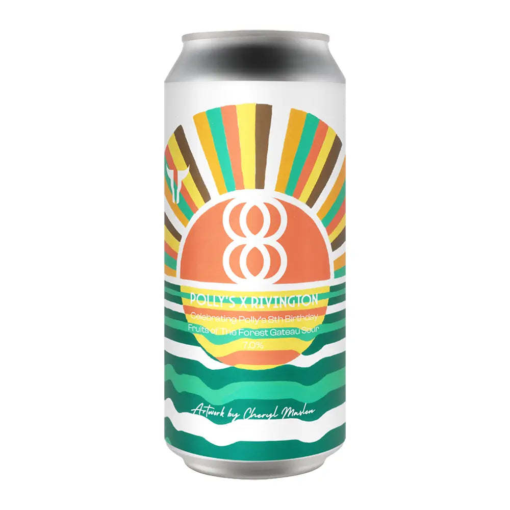 To say we’re huge fans of the work Rivington have been doing over their existence would be an understatement and then some. A fandom that pre-dates Polly’s - our head of sales Arron championed their work when he was helping to bring some of the first craft beer into our hometown of Mold - our friends from just north of Manchester were the first brewery we considered for this year’s birthday beers when we shared a festival space in a very snowy Helsinki in 2025. Intrigued by a discussion on the pastry/smoothie sour style, and how Rivington had approached the style, we knew this was an area in which we had never really ventured as a brewery - with our policy in place of never trying anything unless we were working with a brewery experienced in the style, we wanted to plug into their knowledge and expertise after knowing we can make our own sours so much better with the right guidance. Taking inspiration from a fruits of the forest gateau, we’ve loaded this sour with no less than three quarters of a tonne of fruit, fresh hand-scraped Madagascan vanilla, and cacao nibs. We’re absolutely over the moon with the resulting beer - a thick, pulpy, fruit-forward smoothie sour, with just the right level of acidity balanced out with a decadent sweetness, best encapsulated in the burst of sunshine artwork produced by friend of the brewery, Sandbach-based print artist Cheryl Maslen.